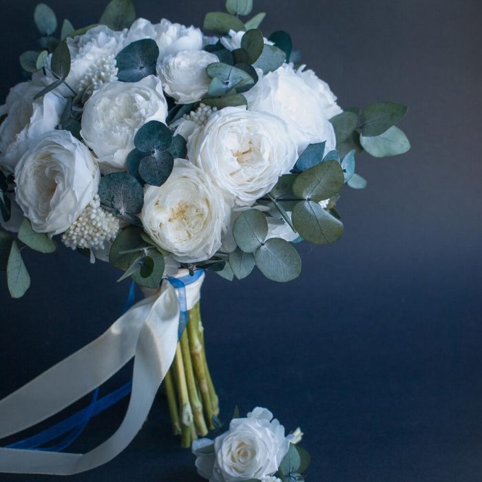 “Эвкалиптическая роскошь” гортензия и пионовидная кустовая роза