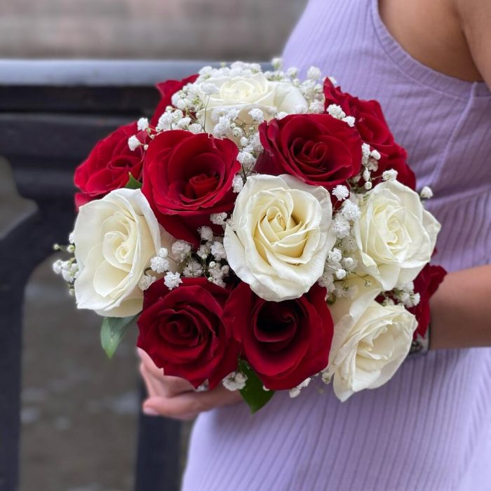 Букет невесты с красными и белыми розами