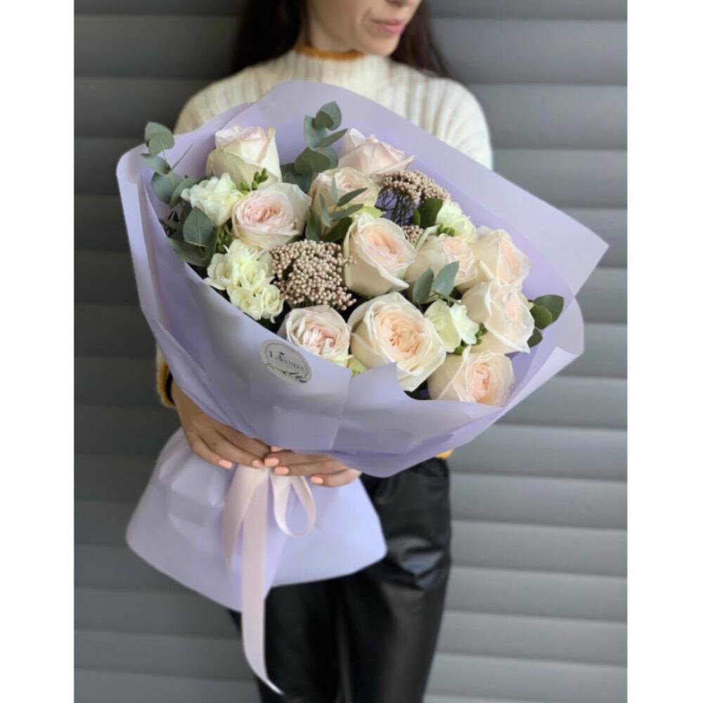 Кустовые розы, Лизиантусы, Розы, Сухоцвет