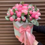 Букет пион роз в шляпной коробке (К 001)