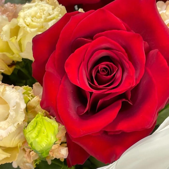 Букет с алой французской розой “Красный бархат”