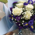 Букет с белыми розами и ирисами