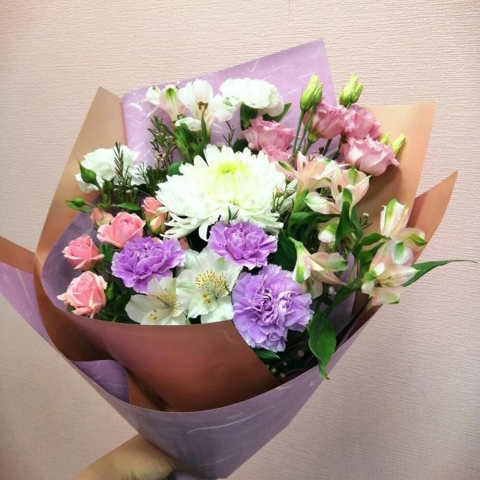 Категорий: Альстромерии, Гвоздики, Кустовые розы, Лизиантусы, Розы, Хризантемы
