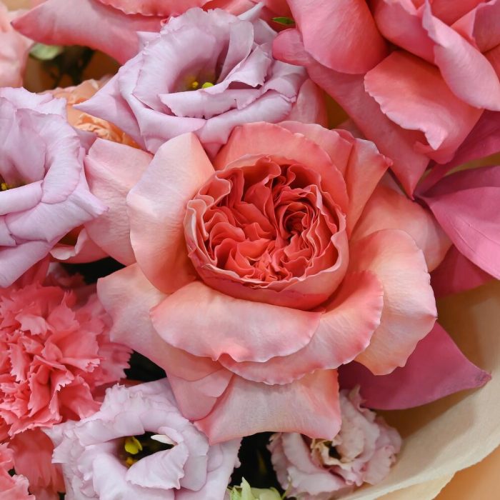 Категорий: Гвоздики, Кустовые розы, Лизиантусы, Пионовидные розы, Розы