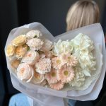 Букет с пионовидными розами и герберами “Нежный”