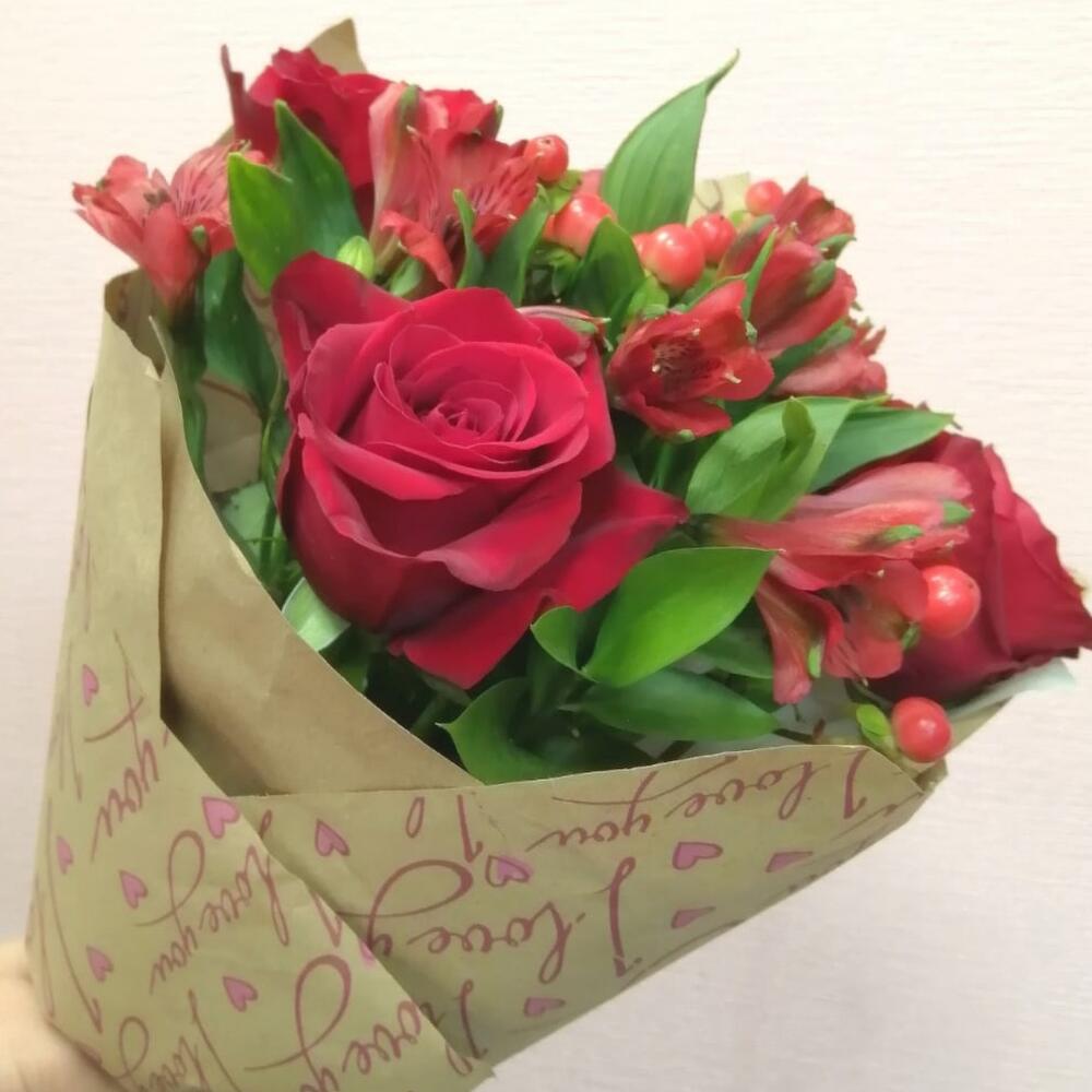 Букет с розами и альстромерией