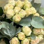Эвкалипт – 1 шт. Кустовая пионовидная роза – 7 шт. Авторская упаковка – 1 шт.