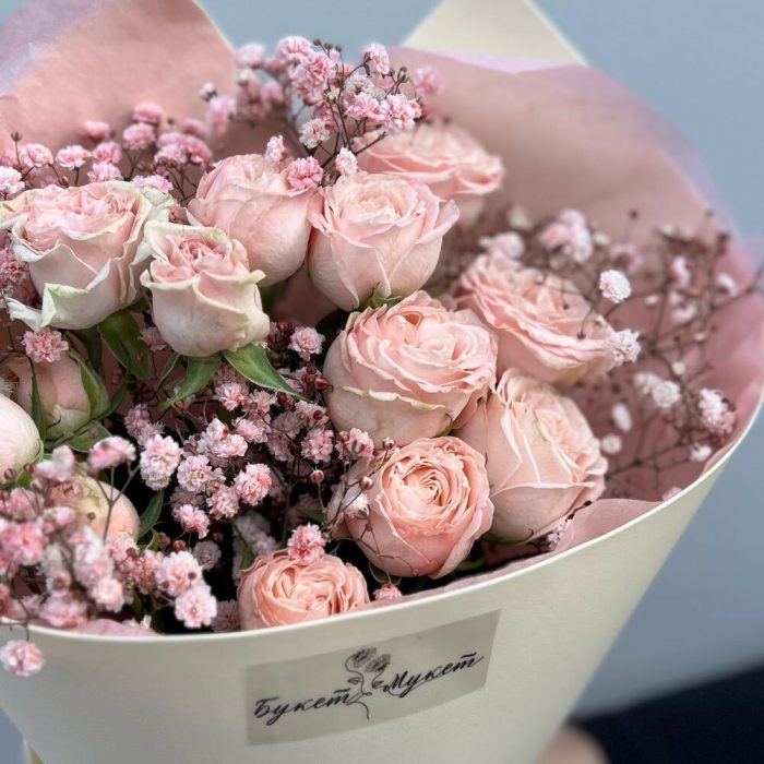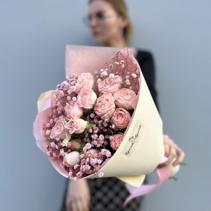 Букет «Ванильное мороженое» (кустовая роза и гипсофила)