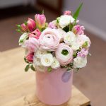 Кустовая роза – 4 шт.Тюльпан пионовидный – 8 шт.Диантус – 2 шт.Ранункулюс – 2 шт.