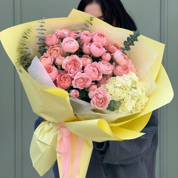 Альстромерии, Кустовые розы, Лизиантусы, Пионовидные розы, Розы, Ромашки