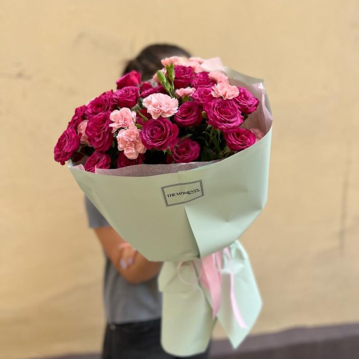 Гвоздики, Кустовые розы, Пионовидные розы, Розы