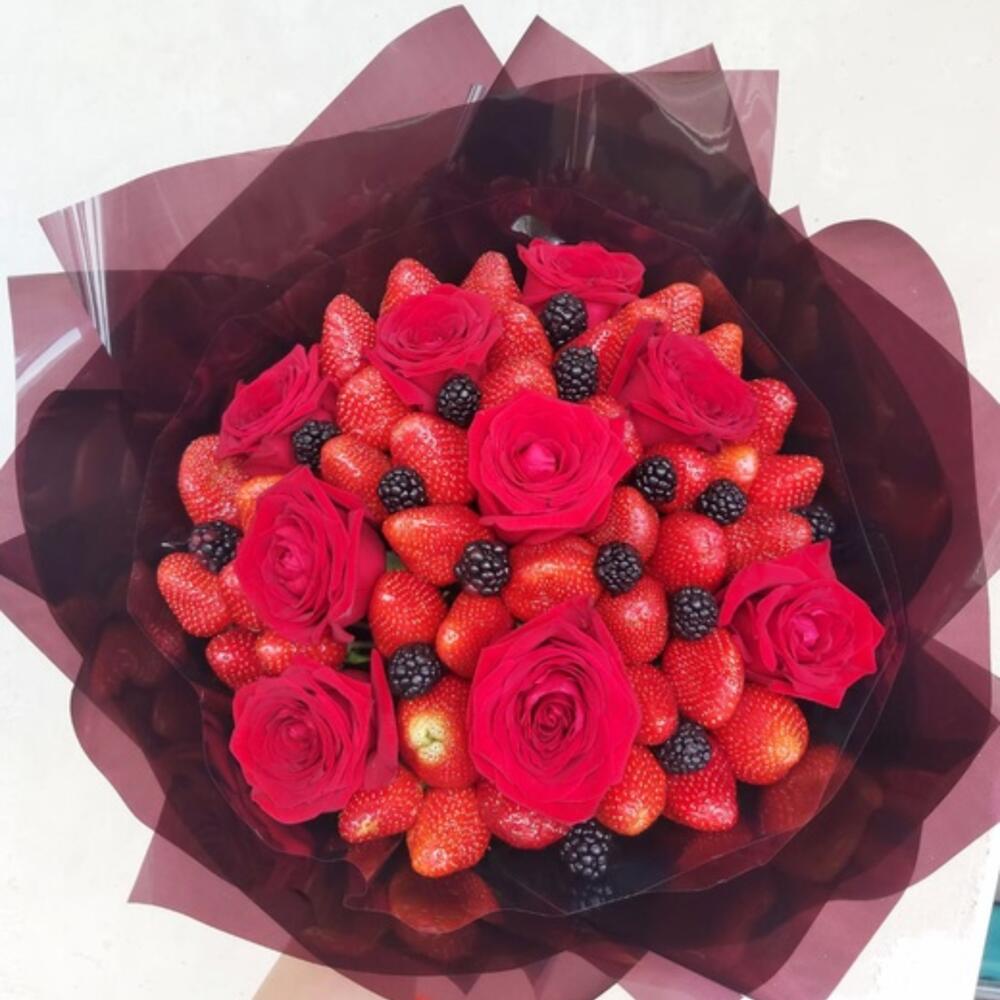 Клубника – 55 шт.Ежевика – 125 гр.роза красные – 9 шт.