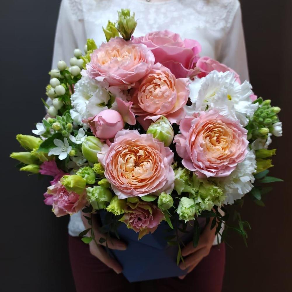 Коробка с пионовидными розами