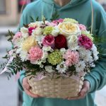 Корзина с нежными розами, тюльпанами и ромашками