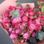 Кустовая роза – 19 шт. Атласная лента – 1 шт. Упаковка дизайнерская – 3 шт. Открыточка с вашими пожеланиями – 1 шт.