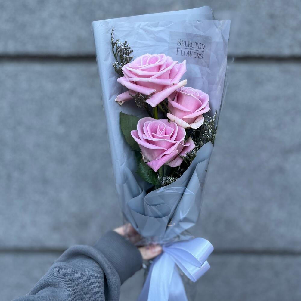 Лимониум – 1 шт.Роза – 3 шт.Дизайнерская упаковка – 1 шт.