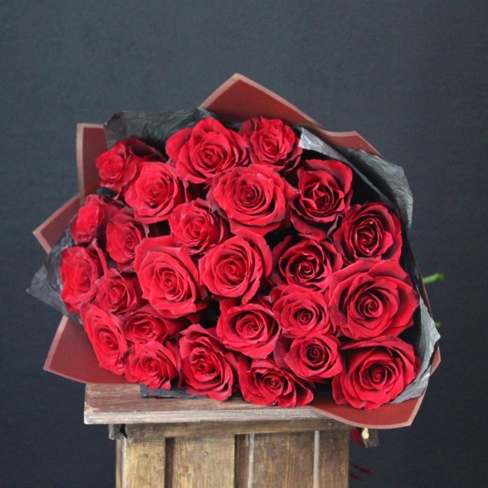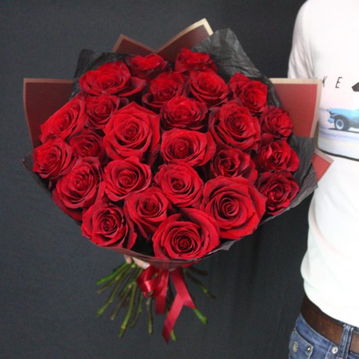 Роза Эквадор Премиум – 25 шт.Тишью – 2 шт.Пленка матовая – 2 шт.