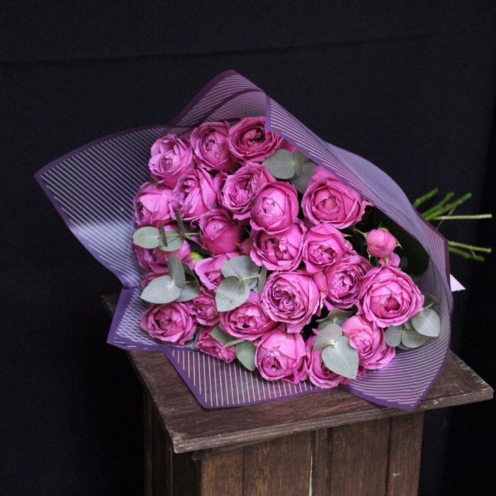 mono bouquet 145 из 5 кустовых пионовидных роз сорта Julietta с эвкалиптом