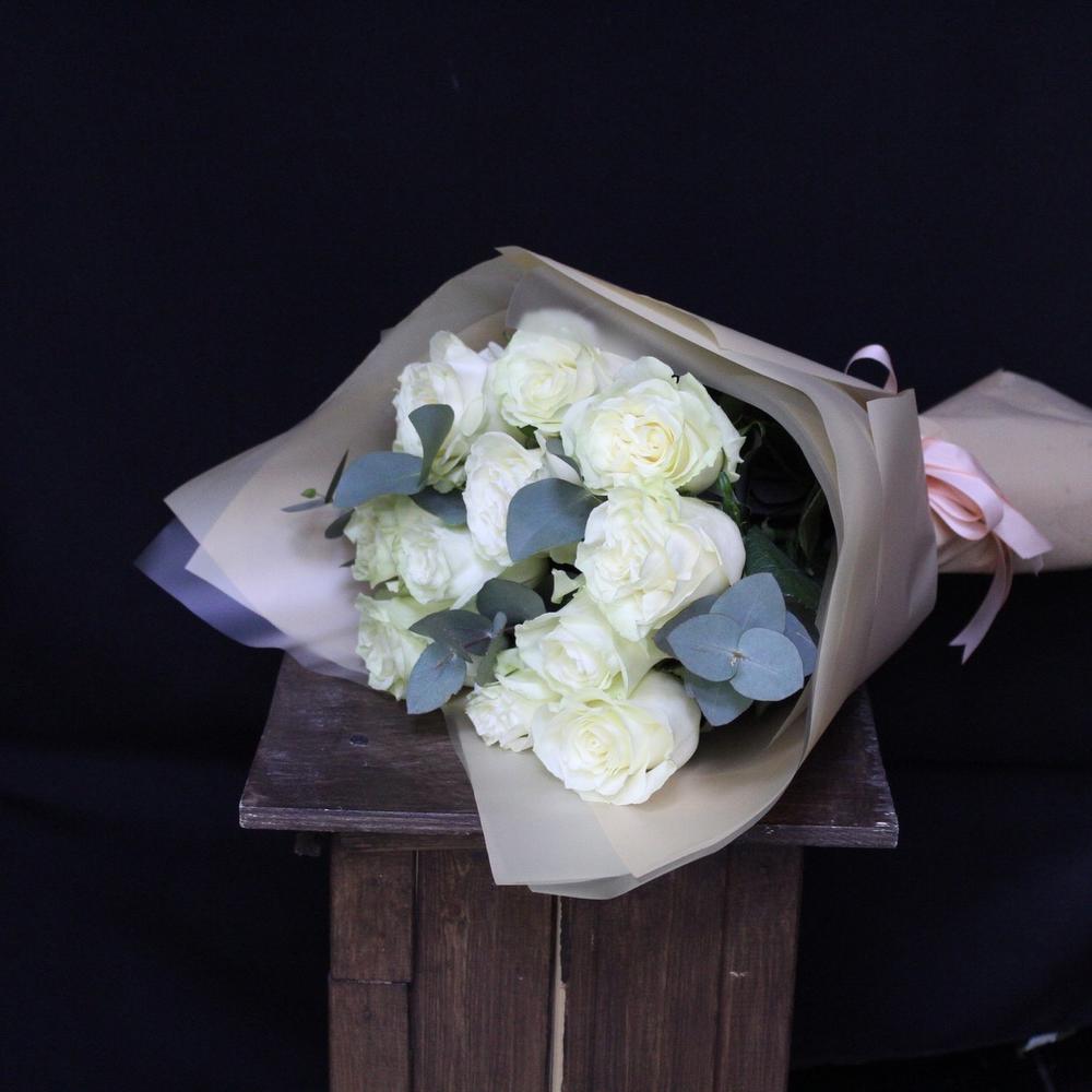 mono bouquet 56 из 11 роз сорта Mondial с эвкалиптом