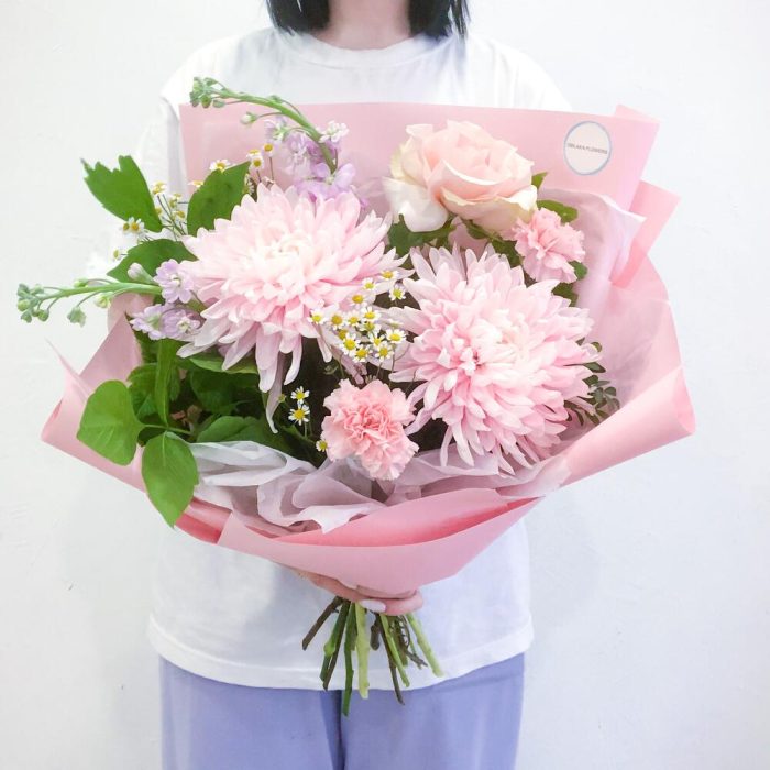Нежно розовый букет с хризантемами
