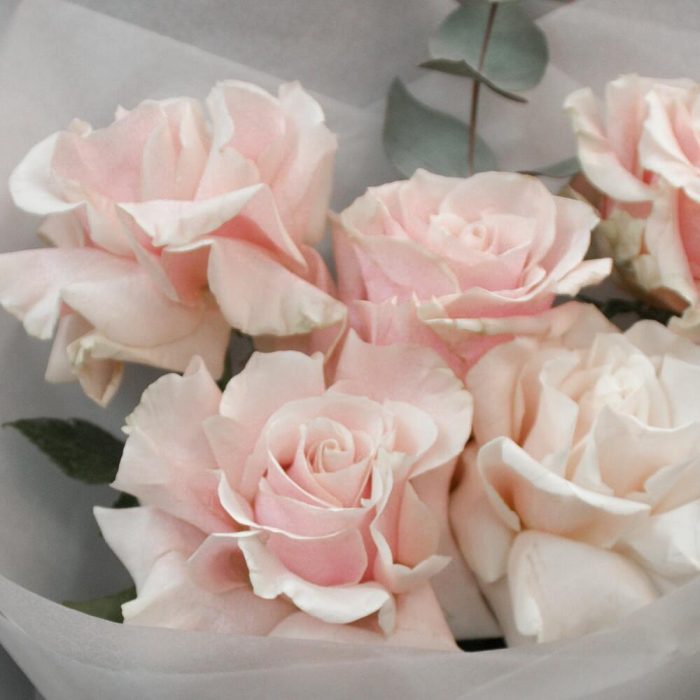 Нежный букет из 5 французских роз с эвкалиптом