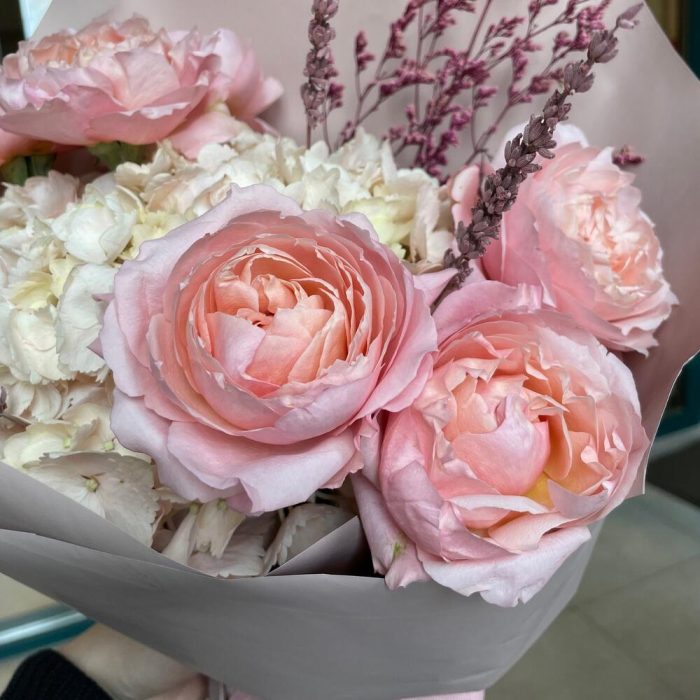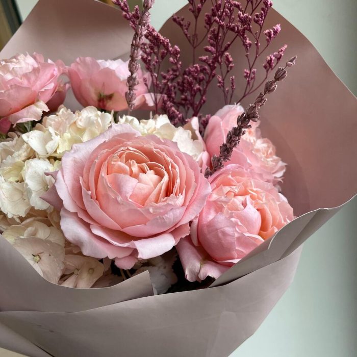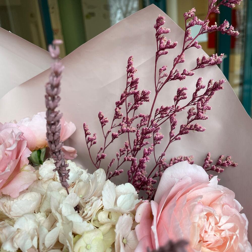 Кустовые розы, Лизиантусы, Розы, Сухоцвет