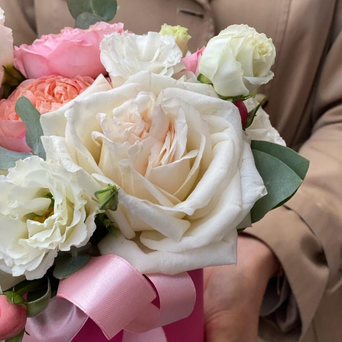 “В твоих глазах”: нежная шляпная коробка с французскими розами