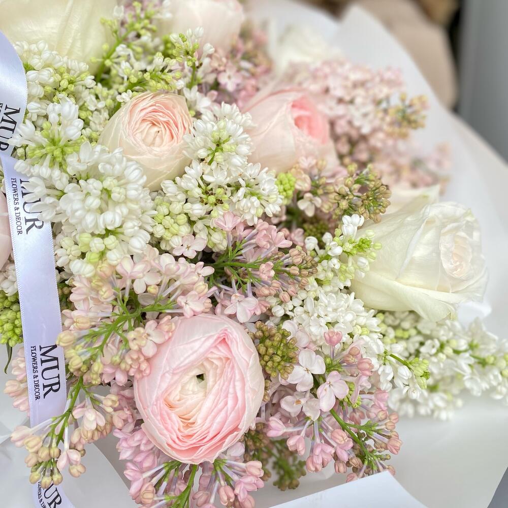 Премиальный состав, самый желанный букет, ОНА будет в восторге Роскошная сирень и пионовидная роза заполнят пространство своим цветочным ароматом , а ранункулюсы будут завораживать своим постепенным раскрытием лепесток за лепестком ♀️