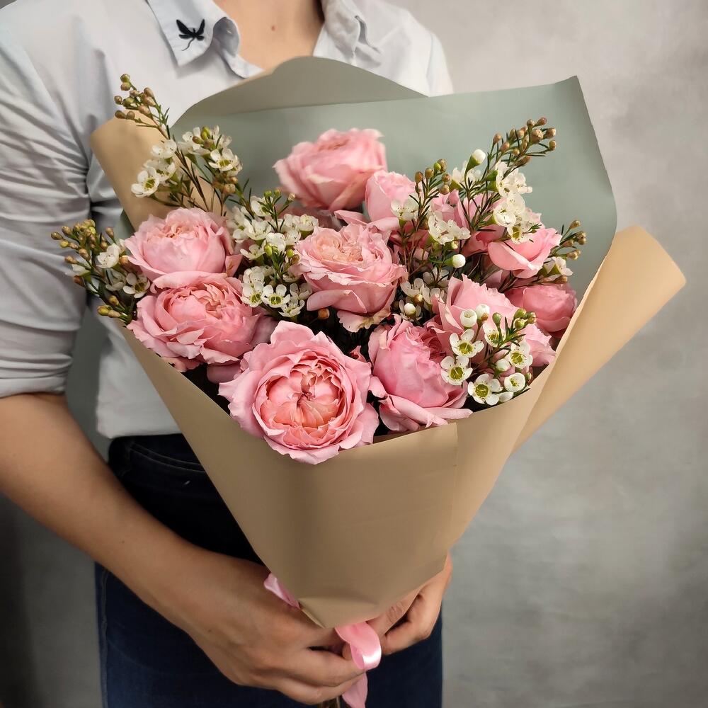 Гвоздики, Кустовые розы, Пионовидные розы, Розы