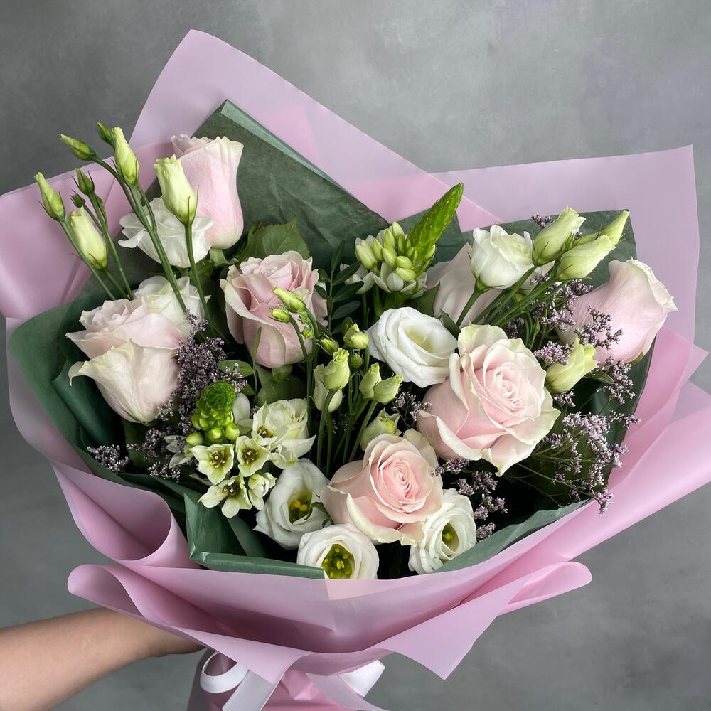 Гвоздики, Кустовые розы, Лизиантусы, Пионовидные розы, Розы