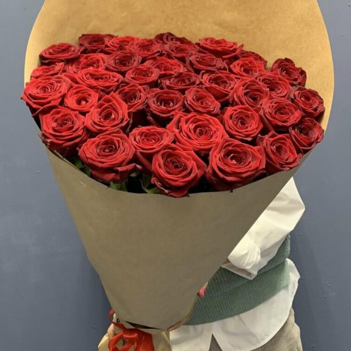 розы эквадор 80 см – 35 шт.Крафт упаковка – 2 шт.Лента атласная – 1 шт.