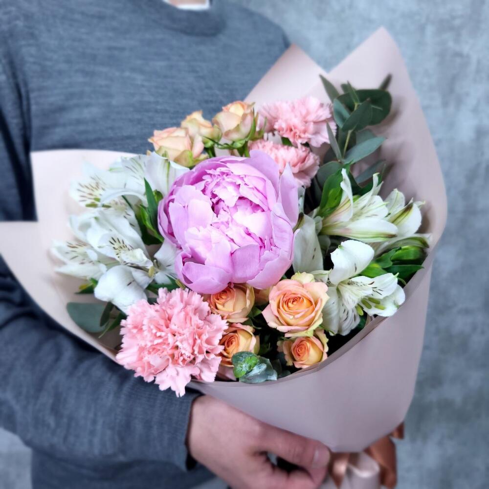 Гвоздики, Кустовые розы, Пионовидные розы, Розы