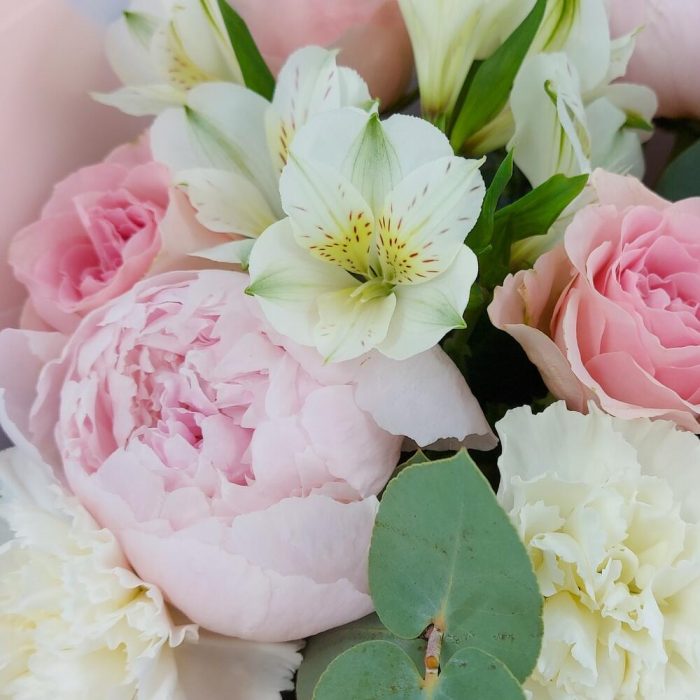 Пышный, ароматный букет с пионами, розами, альстромерией, диантусами и эвкалиптом. Такой букет всегда уместен и подойдёт для любого повода: День Рождения, именины, годовщина свадьбы, рождение ребенка, 8 марта, День Святого Валентина, выпускной и т.д. Можно вручить маме, … Показать ещёсестре, подруге, коллеге, учителю, любимой.