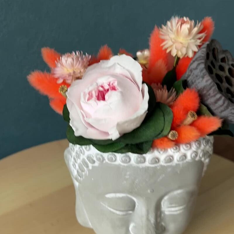 Сухоцветы в кашпо Будда