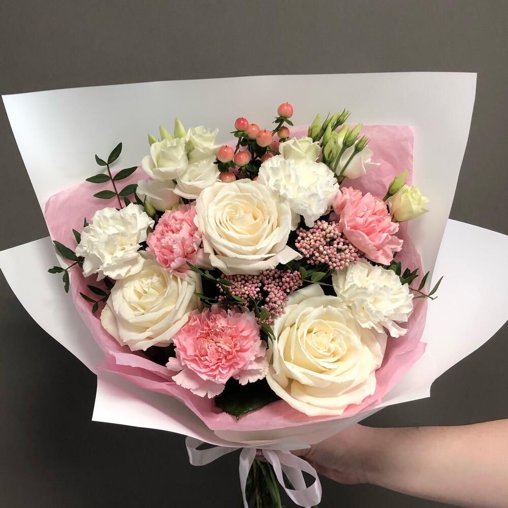 Гвоздики, Лизиантусы, Розы