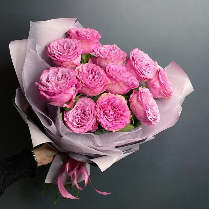 Упаковка дизайнерская – 1 шт.Роза пионовидная розовая – 11 шт.