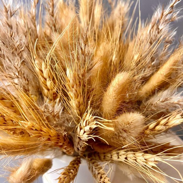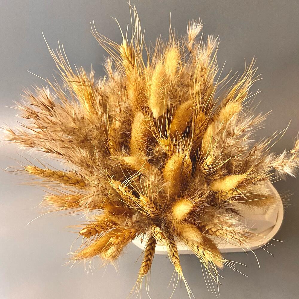 Колоски – 30 шт.Лагурус – 30 шт.Помпасная трава – 10 шт.кашпо гипсовое – 1 шт.поднос гипсовый – 1 шт.свеча ручной работы аромат масло ши – 1 шт.