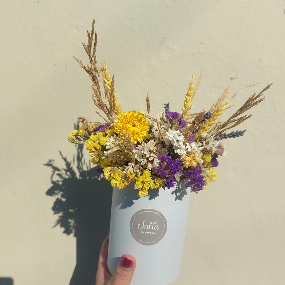 гелизризум – 1 шт.акроклинум сухоцвет – 20 шт.злаки микс – 10 шт.Статица – 9 шт.