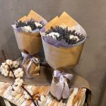 «Лавандовое созвездие» Букет из розы, гвоздики, статица и хлопка