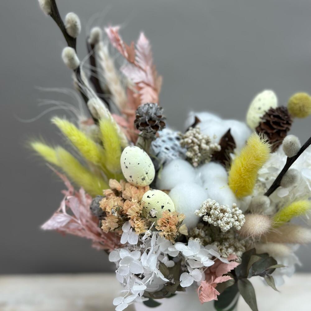 «Лавандовое созвездие» Букет из розы, гвоздики, статица и хлопка