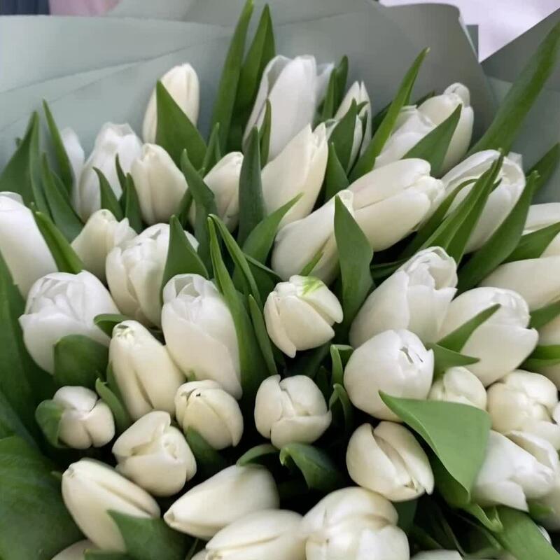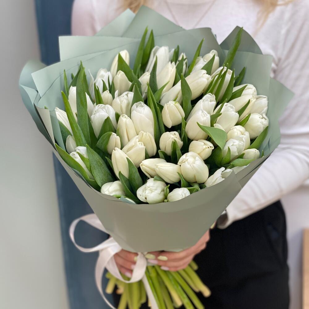 Букет белых тюльпанов 51 шт - «Рай на двоих»