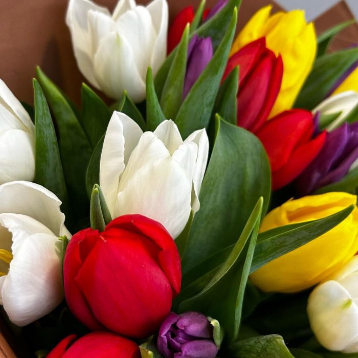 Букет из 35 разноцветного тюльпана