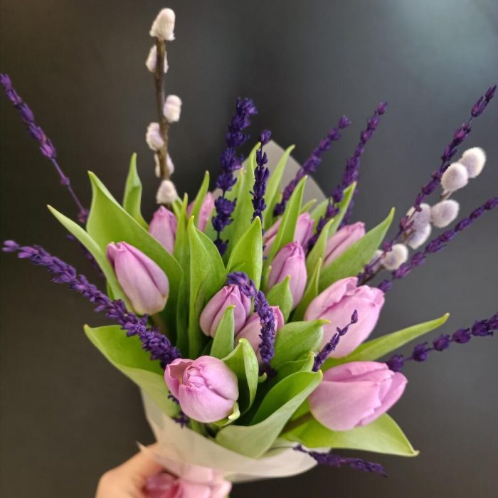 Букет с тюльпанами и лавандой
