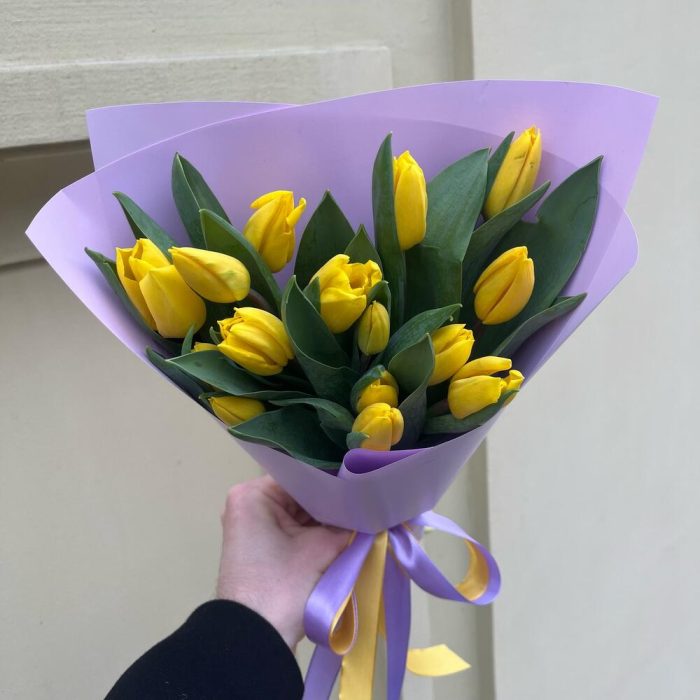 Тюльпан желтый – 15 шт.Упаковка корейская пленка – 1 шт.